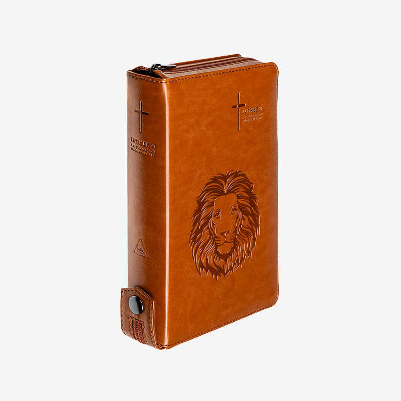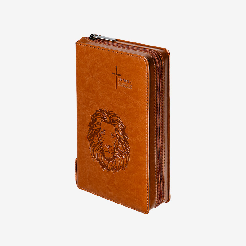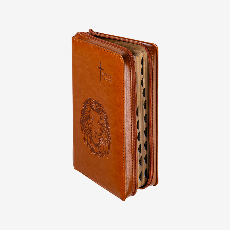 löwenbraun - Goldschnitt - Griffregister - Reißverschluss - Worte Jesu in schwarz